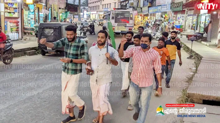 പ്രതിഷേധ പ്രകടനത്തിന് അറഫി കാട്ടിപ്പരുത്തി, ജൗഹർ പുളിയിലക്കോട്, ജംഷീദ് കാളിയേടത്ത്, കെ ടി ഫൈസൽ, കബീർആലുങ്കത്തോടി, ഷാദിൽ, മുബഷിർ, ഹബീബ്, ഹാദിൽ, റംഷീദ്, ഇർഷാദ്,ജെയ്സൽ എന്നിവർ നേതൃത്വം നൽ