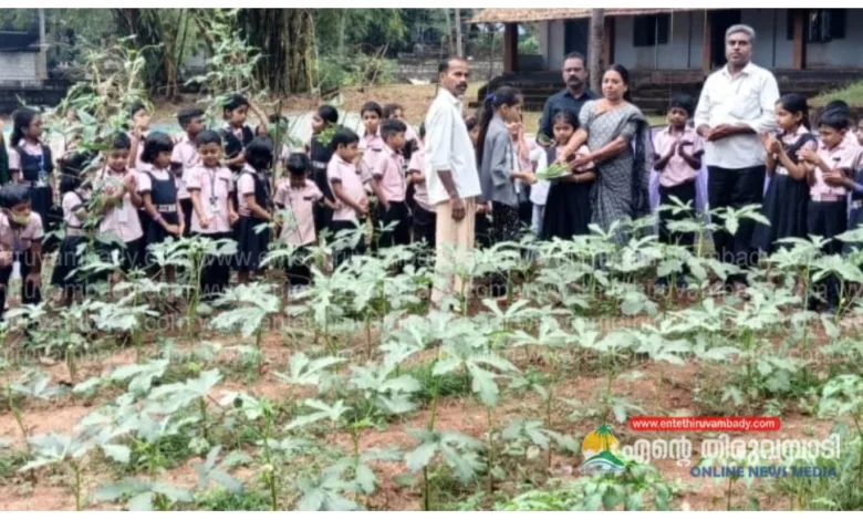 വെണ്ട, പയർ, വഴുതിന, തക്കാളി, എന്നിവയാണ് ക്യഷി ചെയ്തിട്ടുള്ളത്. കുട്ടികളും രക്ഷിതാക്കളുമടങ്ങിയ ഏഴ് ഗ്രൂപ്പുകളാണ് കൃഷി പരിപാലനം നടത്തിയത്.വാർഡ് മെംബർ എ പി ബീന ഒന്നാംഘട്ട വിളവെടുപ്പ് ഉദ്ഘാടനം ചെയ്തു.പി ടി എ പ്രസിഡൻ്റ് കെ സുരേഷ്, മുൻ വാർഡ് മെംബർ കെ ആർ ഗോപാലൻ സംബസിച്ചു.
