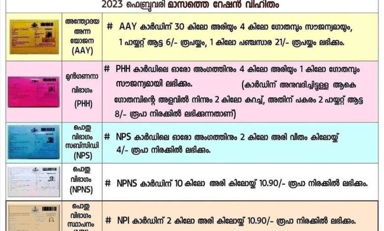 3. എല്ലാ വിഭാഗം റേഷൻ കാർഡുകൾക്കും അനുവദിച്ചിട്ടുള്ള, 2023 ഫെബ്രുവരി മാസത്തെ റേഷൻ വിഹിതവും ചുവടെ ചേർക്കുന്നു