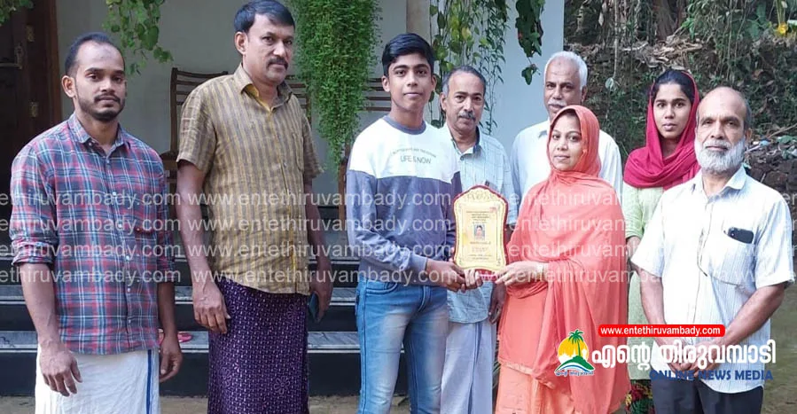 ഡിവിഷൻ കൗൺസിലർ സകീന കബീർ അവാർഡ് സമർപ്പിച്ചു റിട്ടയേഡ് അദ്ധ്യാപകൻ പി ഉണ്ണിമോയിയുടെയും ഖൈറുന്നിസയുടെയും മകനായ അമൻറോഷൻ തിരുവമ്പാടി എസ് എച്ച് എച്ച് എസ് ലെ പത്താം ക്ലാസ്സ് വിദ്യാർത്ഥിയാണ്ചടങ്ങിൽ സി പി മുഹമ്മദ്, ഷഫീഖ് വി ടി , പി കെ അബ്ദുസ്സലാം, ഐ പി ഉമർ സംബന്ധിച്ചു.