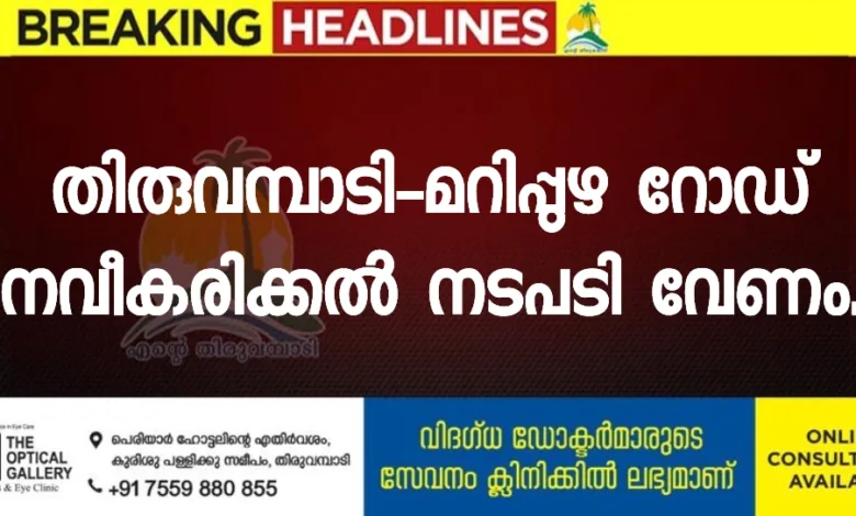 തിരുവമ്പാടി-മറിപ്പുഴ റോഡ് വീതി കൂട്ടി നവീകരിക്കുന്നതിന്, സ്ഥല ഉടമകൾ സൗജന്യമായി സ്ഥലം വിട്ടു നൽകി സറണ്ടർ ഫോറം ഒപ്പിട്ടു നൽകിയിട്ട് മൂന്ന് വർഷം കഴിഞ്ഞു. റോഡ് കിഫ്ബിയിൽ ഉൾപ്പെടുത്തി നവീകരണം ഉടൻ ആരംഭിക്കുമെന്ന സ്ഥലം എം. എൽ. എ. യുടെ പ്രഖ്യാപനമല്ലാതെ നാളിതുവരെയായിട്ടും പ്രവർത്തി ആരംഭിച്ചിട്ടില്ല.