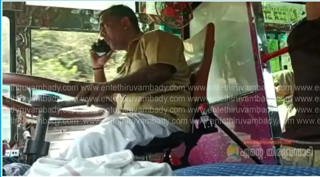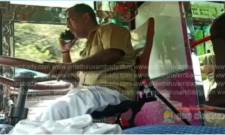 ബസ് ഓടിക്കുന്നതിനിടെ ഫോൺ വിളി; സ്വകാര്യ ബസ് ഡ്രൈവറുടെ ലൈസൻസ് സസ്പെന്റ് ചെയ്തു