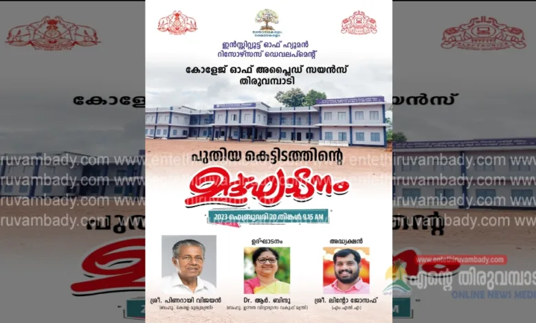 തിരുവമ്പാടി: കേരള സർക്കാർ സ്ഥാപനമായ ഐ.എച്ച്.ആർ.ഡിയുടെ കീഴിൽ പ്രവർത്തിക്കുന്ന കോളേജ് ഓഫ് അപ്ലൈഡ് സയൻസ് തിരുവമ്പാടിക്ക് വേണ്ടി തിരുവമ്പാടി മുൻ എം.എൽ.എ സി മോയിൻകുട്ടിയുടെ പ്രാദേശിക വികസന ഫണ്ട് ഉപയോഗിച്ച് കാരശ്ശേരി പഞ്ചായത്തിലെ തോട്ടക്കാട് നിർമിച്ച കെട്ടിടം തിരുവമ്പാടി എം.എൽ.എ ലിന്റോ ജോസഫിന്റെ അധ്യക്ഷതയിൽ ഉന്നത വിദ്യാഭ്യാസ വകുപ്പ് മന്ത്രി ഡോ. ആർ ബിന്ദു ഇന്ന് രാവിലെ 9:30ന് ഔപചാരികമായി ഉദ്ഘാടനം ചെയ്യും.