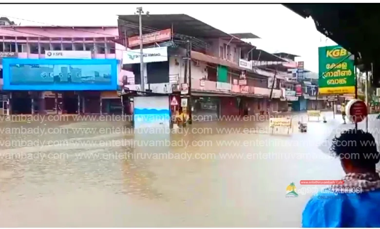 കനത്ത മഴ: തിരുവമ്പാടി ടൗൺ ഉൾപ്പെടെ താഴ്ന്ന പ്രദേശങ്ങൾ വെള്ളത്തിൽ