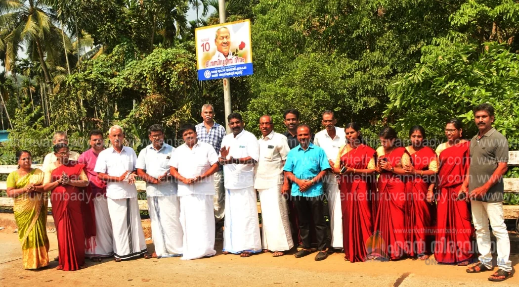 മുക്കം:അഗസ്ത്യൻമുഴി പാലത്തിൽ അഞ്ചു വർഷങ്ങൾക്ക് മുൻപ് കെ വി വി ഇ എസ് അഗസ്ത്യാൻമുഴി യൂണിറ്റ് സ്ഥാപിച്ച സോളാർ വഴി വിളക്കുകൾ നവീകരിച്ച് ടി നസീറുദ്ദീന്റെ ഫോട്ടോകൾ ആലേഖനം ചെയ്ത് നാടിനു സമർപ്പിച്ചു. യൂണിറ്റ് പ്രസിഡണ്ട് ജോസഫ് പൈമ്പിള്ളി അധ്യക്ഷത വഹിച്ച ചടങ്ങ് കെ വി വി ഇ എസ് കോഴിക്കോട് ജില്ലാ വൈസ് പ്രസിഡണ്ട് റഫീഖ് മാളിക ഉദ്ഘാടനം ചെയ്തു. ചടങ്ങിൽ നിയോജകമണ്ഡലം പ്രസിഡണ്ട് പി പ്രേമൻ, മണ്ഡലം ട്രഷറർ എം ടി അസ്ലം, യൂണിറ്റ് ജനറൽ സെക്രട്ടറി ടി കെ സുബ്രഹ്മണ്യൻ, ട്രഷറർ പി കെ റഷീദ്, സെക്രട്ടറി പ്രമോദ് സി, മോഹൻദാസ് എം സി, ഷിബു എസ്, പുഷ്പാ സുബ്രഹ്മണ്യൻ, റീന രാജേഷ് എന്നിവർ സംസാരിച്ചു.