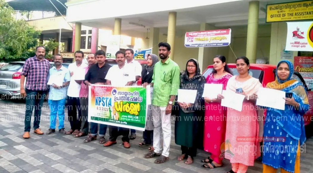 ധർണ്ണ കെ.പി.എസ്. ടി. എ. സംസ്ഥാന നിർവാഹക സമിതിയംഗം പി.ജെ. ദേവസ്യ ഉദ്ഘാടനം ചെയ്തു. സംസ്ഥാന സർക്കാരിന്റെ വികലമായ വിദ്യാഭ്യാസ നയങ്ങൾക്കെതിരെയുള്ള ശക്തമായ പ്രതിഷേധമായി മാറി ഇന്നത്തെ സായാഹ്ന ധർണ. സംസ്ഥാന കൗൺസിൽ അംഗം സുധീർകുമാർ , റവന്യു ജില്ല ജോ.സെക്രട്ടറി ഷെറീന ബി. റവന്യു ജില്ലാ കൗൺസിൽ അംഗം ജെസിമോൾ കെ.വി., വിദ്യാഭ്യാസ ജില്ല വൈസ് പ്രസിഡന്റ് സിറിൽ ജോർജ് , ഉപജില്ല സെക്രട്ടറി മുഹമ്മദ് അലി.ഇ.കെ., ഉപജില്ല ട്രഷറർ ജോയ് ജോസഫ് , ഷാജു കെ.എസ്. എന്നിവർ പ്രസംഗിച്ചു.