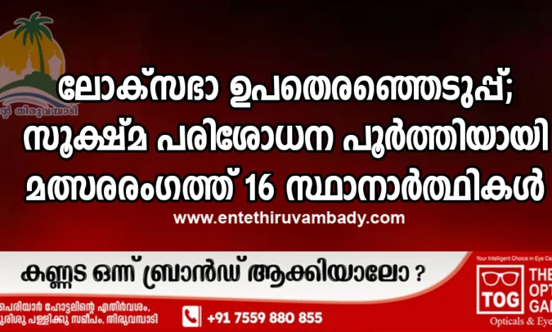 ലോക്സഭാ ഉപതെരഞ്ഞെടുപ്പ്;സൂക്ഷ്മ പരിശോധന പൂര്ത്തിയായി മത്സരരംഗത്ത് 16 സ്ഥാനാർത്ഥികൾ