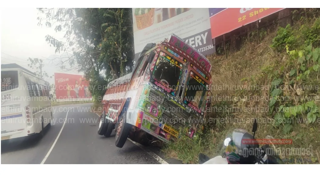 താമരശ്ശേരി ചുരം ഒന്നാം വളവിനും രണ്ടാം വളവിനും ഇടയിലുള്ള സ്ഥലത്ത് ഓവുചാലിലേക്ക് ലോറി മറിഞ്ഞു, കർണാടകയിൽ നിന്ന് ചരക്കുമായി കോഴിക്കോട്ടേക്ക് പോകുന്ന ലോറിയാണ് നിയന്ത്രണം നഷ്ടമായതിനെ തുടർന്ന് മറിഞ്ഞത്.