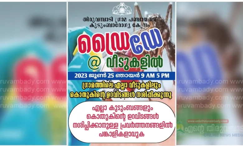 തിരുവമ്പാടി: മഴക്കാല രോഗപ്രതിരോധ പ്രവർത്തനത്തിൻ്റെ ഭാഗമായി തിരുവമ്പാടി ഗ്രാമപഞ്ചായത്തിലെ എല്ലാ വീടുകളിലും ഡ്രൈ ഡേ ആചരണവും ശുചീകരണവും നടത്തുവാൻ ഗ്രാമപഞ്ചായത്ത് അധികൃതർ ആഹ്വാനം ചെയ്തു.