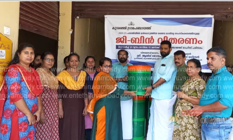 കൂടരഞ്ഞി:അടുക്കള മാലിന്യങ്ങൾ ശാസ്ത്രീയമായി സംസ്കരിക്കുന്നതിന് ജി-ബിൻ വിതരണം ചെയ്തു.വീടുകളിലെ അടുക്കളയിൽ തന്നെ സ്ഥാപിക്കാവുന്നതാണ് ജി-ബിൻ. ഫ്ലാറ്റുകളിലെയും വീട്ടിലെയും മാലിന്യങ്ങൾ നിക്ഷേപിക്കാൻ കൂടരഞ്ഞി ഗ്രാമ പഞ്ചായത്ത് 2022-23 പദ്ധതിയിൽ ഉൾപ്പെടുത്തിയ ജൈവ മാലിന്യ സംസ്കരണത്തിനുള്ള ജീ – ബിൻ വിതരണ ഉദ്ഘാടനം ഗ്രാമ പഞ്ചായത്ത് പ്രസിഡന്റ് ആദർശ് ജോസഫ് നിർവഹിച്ചു.. ആരോഗ്യ വിദ്യാഭ്യാസ സ്റ്റാന്റിംഗ് കമ്മിറ്റി ചെയർമാൻ വി.എസ്.രവി അദ്ധ്യക്ഷത വഹിച്ചു.. ക്ഷേമകാര്യ ചെർപേഴ്സൺ റോസിലിടീച്ചർ, ,മെമ്പർമാരായ ജറീന റോയ്, ബാബു മൂട്ടോളി, ബിന്ദു ജയൻ , വില്ലേജ് എക്റ്റൻഷൻ ഓഫീസർമാരായ ബിജി പി.എസ്, ജോസ് കുര്യാക്കോസ് എന്നിവർ ചടങ്ങിൽ പങ്കെടുത്തു .