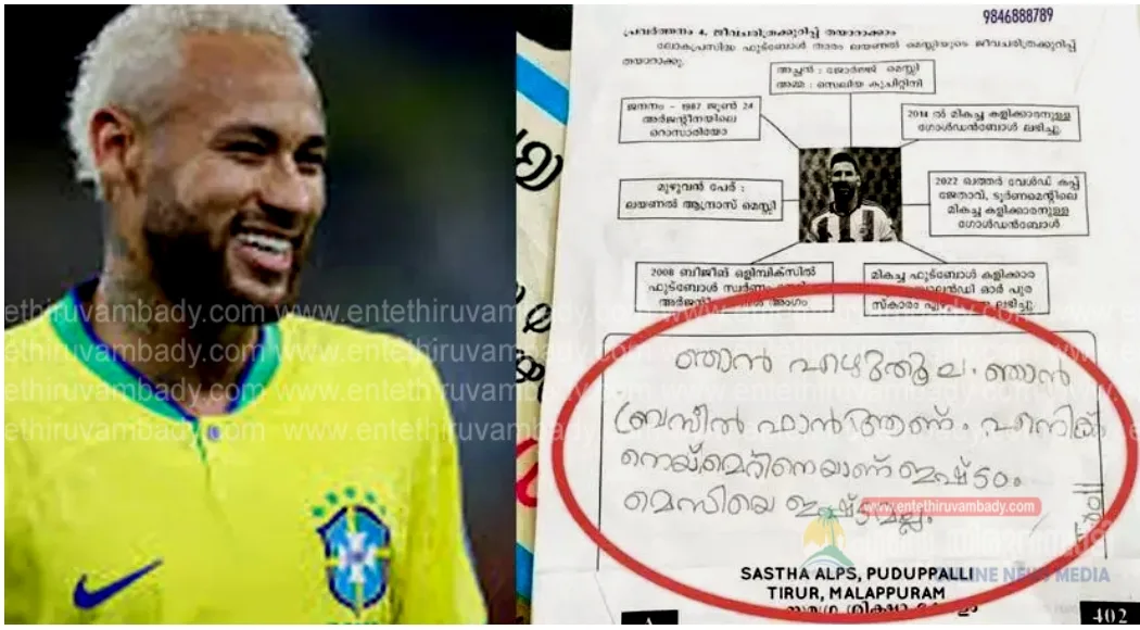 പക്ഷേ കടുത്ത ബ്രസീൽ ആരാധികയായ റിസക്ക് അതൊട്ടും ഉൾക്കൊള്ളാനായില്ല. ഒടുവിലാണ് വൈറലായ ഉത്തരം എഴുതുന്നത്. ‘ഞാൻ എഴുതൂല, ഞാൻ ബ്രസീൽ ഫാൻ ആണ്. എനിക്ക് നെയ്മറിനെയാണ് ഇഷ്ടം. മെസിയെ ഇഷ്ടമല്ല’ -എന്നായിരുന്നു റിസ എഴുതിയത്. വിദ്യാർഥി ഇങ്ങനെയൊരു ഉത്തരം എഴുതിയത് ശ്രദ്ധയിൽപെടുകയും പിന്നീടത് തിരുത്താൻ ആവശ്യപ്പെടുകയും ചെയ്തെന്ന് സ്കൂൾ അധ്യാപകന് റിഫ ഷെലീസ് വ്യക്തമാക്കി.വളരെ ഗൗരവത്തിൽതന്നെയാണ് റിസ ഉത്തരമെഴുതിയത്. അതേസമയം ഇതേ ചോദ്യത്തിന് മാത്രം നന്നായി എഴുതിയ വിദ്യാർഥികൾ ഉണ്ട്. ക്രിസ്റ്റ്യാനോ റൊണാൾഡോയെക്കുറിച്ച് ചോദിക്കാത്തത്തിന് പരിഭവം പറഞ്ഞതായും രസകരമായ വിവരണങ്ങളാണ് വിദ്യാർഥികൾ നൽകിയതെന്നും അധ്യാപകൻ വ്യക്തമാക്കി.ഏതായാലും റിസ ഫാത്തിമയുടെ ഉത്തരപ്പേപ്പർ ക്ലിക്കായി. പല സ്പോർട്സ് ഗ്രൂപ്പുകളിലും റിസയുടെ ഉത്തരപ്പേപ്പർ കറങ്ങുന്നുണ്ട്. ഇതിനടിയിൽ രസകരമായ കമന്റുകളും നിറയുന്നുണ്ട്