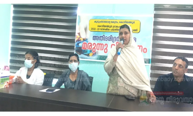 കൊടിയത്തൂർ കുടുംബാരോഗ്യ കേന്ദ്രത്തിൽ നടന്ന ചടങ്ങിൽ ഗ്രാമ പഞ്ചായത്ത് പ്രസിഡൻ്റ് വി.ഷംലൂലത്ത് വിതരണോദ്ഘാടനം നിർവഹിച്ചു. വാർഡ് മെമ്പർ ഫസൽ കൊടിയത്തൂർ അധ്യക്ഷത വഹിച്ചു. മെഡിക്കൽ ഓഫീസർ ഡോ; ബിന്ദു, ഫാർമസിസ്റ്റ് ശാലിനി തുടങ്ങിയവർ സംസാരിച്ചു.തുടർന്ന് ഗുണഭോക്താക്കളുമായി സംസാരിക്കുകയും അവരുടെ ആവശ്യങ്ങൾ മനസിലാക്കുകയും ചെയ്തു. പഞ്ചായത്തിലെ ഗുണഭോക്തൃ പട്ടികയിലുൾപ്പെടെ അതിദരിദ്രർക്ക് പ്രഥമ പരിഗണന നൽകുന്നതിനും തീരുമാനിച്ചു