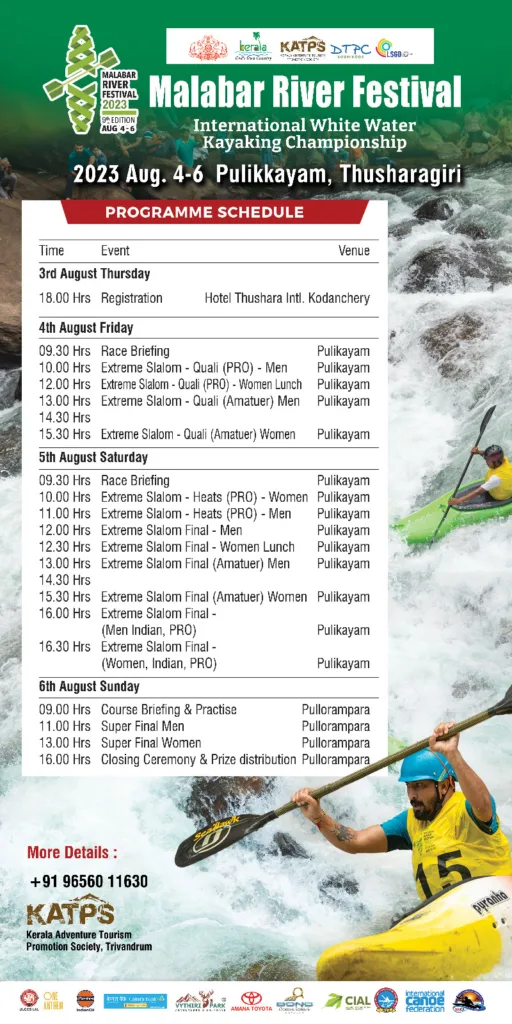 കഴിഞ്ഞവർഷം അറുപതിലേറെ താരങ്ങൾ മാറ്റുരച്ച മത്സരത്തിൽ ഇക്കുറി കൂടുതൽ വിദേശതാരങ്ങൾ എത്തിച്ചേർന്നു. ഉത്തരാഖണ്ഡിലെ ഋക്ഷികേശ് നിന്നുള്ള താരങ്ങളാണ് കൂടുതൽ എത്തിച്ചേർന്നിട്ടുള്ളത്. സമാപന ദിവസമായ ഞായറാഴ്ച വൈകിട്ട് നാലുമണിക്ക് പുലിക്കയത്ത് നിർമ്മിച്ച കയാക്കിംങ് ഫെസിലിറ്റേഷൻ സെന്ററിന്റെ ഉദ്ഘാടനം ടൂറിസം മന്ത്രി പി എ മുഹമ്മദ് റിയാസ് ഉദ്ഘാടനം ചെയ്യും. തുടർന്ന് ഇലന്തുകടവിൽ നടക്കുന്ന സമാപന സമ്മേളനത്തിൽ മന്ത്രി വിജയികൾക്കുള്ള സമ്മാനദാനം നൽകും.