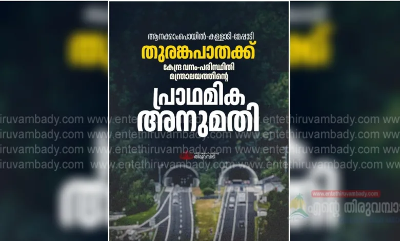 ആനക്കാംപൊയിൽ-കള്ളാടി-മേപ്പാടി തുരങ്കപാതക്ക് കേന്ദ്ര വനം-പരിസ്ഥിതി മന്ത്രാലയത്തിന്റെ പ്രാഥമിക അനുമതി ലഭിച്ചതായി ലിന്റോ ജോസഫ്എം.എൽ.എ, പറഞ്ഞു.പദ്ധതിക്കായി ഉപയോഗിക്കുന്ന വനഭൂമിക്കു പകരം 17.263 ഹെക്ടർ ഭൂമിയിൽ വനം വെച്ചു പിടിപ്പിക്കണമെന്ന നിർദേശമാണ് മന്ത്രാലയം നൽകിയിട്ടുള്ളത്.സൗത്ത് വയനാട് ഡിവിഷനിൽ പെട്ട ചുള്ളിക്കാട്,കൊള്ളിവയൽ,മടപ്പറമ്പ്,മണൽവയൽ വില്ലേജുകളിൽ വനം വകുപ്പ് ഏറ്റെടുത്ത ഭൂമിയിൽ ഈ പ്രവർത്തനം നടക്കും എം.എൽ.എ, പറഞ്ഞു