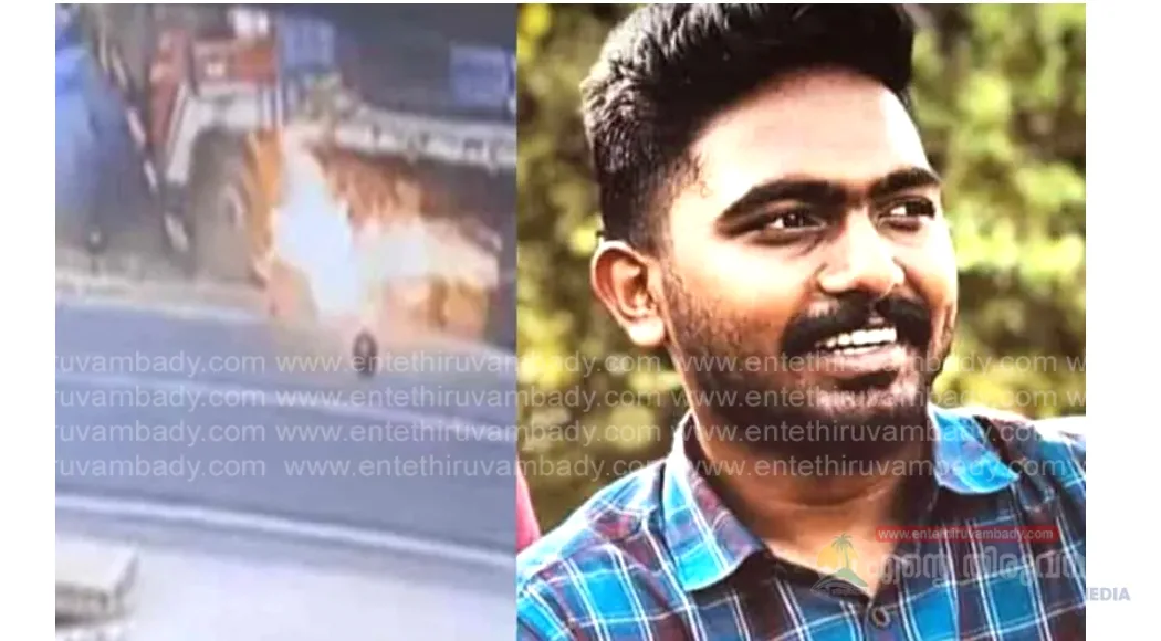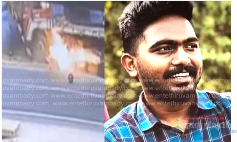 ലോറി ബൈക്കിലിടിച്ചു, പിന്നാലെ ഇലക്ട്രിക് പോസ്റ്റിലും; തീപ്പിടിച്ച് ബൈക്ക് യാത്രികന് ദാരുണാന്ത്യം