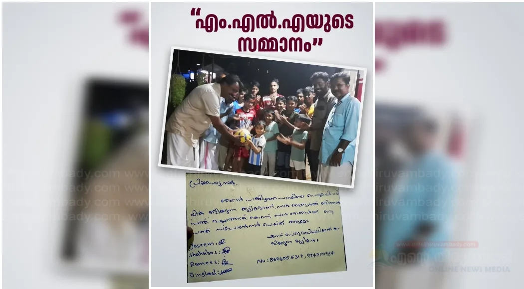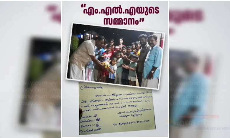 ഓഫീസിൽ കത്ത് ലഭിച്ച ഉടൻ കുട്ടികളോട് പ്രത്യേക വാത്സല്യമുള്ള എംഎൽഎ അവരുടെ ആഗ്രഹം നിറവേറ്റി കൊണ്ട് സിപിഐഎം തിരുവമ്പാടി ഈസ്റ്റ് ലോക്കൽ സെക്രട്ടറി സജി ഫിലിപ്പ് മുഖാന്തരം ഇന്നലെ കുട്ടികൾക്ക് പന്ത് കൈമാറി. എംഎൽഎ കുട്ടികളെ വിളിച്ച് ആശംസയും അറിയിച്ചു. റോയ് , അപ്പു കോട്ടയിൽ, ഷിബു പെരുമാലിപ്പടി, അജയ് ഫ്രാൻസി തുടങ്ങിയവർ പങ്കെടുത്തു.