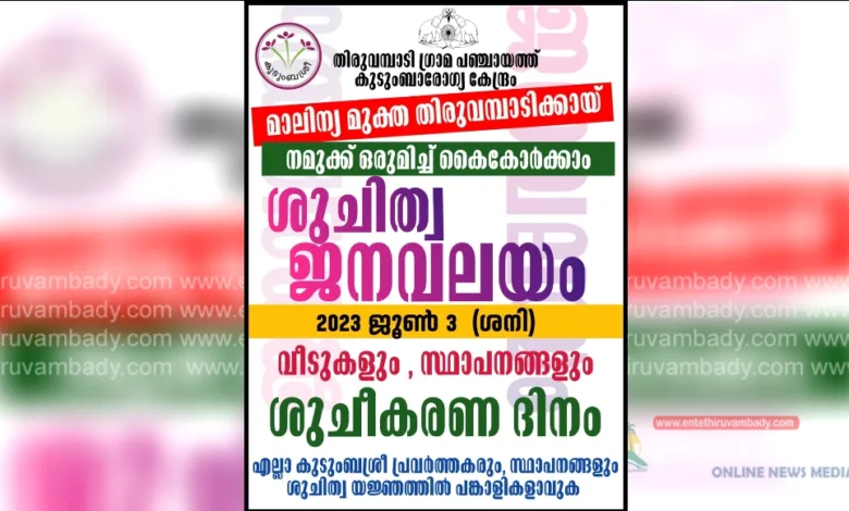 ജൂൺ 4 ന് ഗ്രാമത്തിലെ അങ്ങാടികളും , പൊതുയിടങ്ങളും ജനകീയ പങ്കാളിത്യത്തോടെ ശുചീകരിക്കും. ജനപ്രതിനിധികൾ, വ്യാപാരികൾ, രാഷ്ട്രീയ-സാമൂഹിക-സാംസ്കാരിക- യുവജന സംഘടനകൾ – ആരോഗ്യ പ്രവർത്തകർ , ഹരിത കർമ്മസേന, ആശ വർക്കർമാർ തുടങ്ങിയവർ ശുചിത്വ ജനവലയം ശുചീകരണ ക്യാമ്പയ്ന് നേതൃത്വം നൽകും .