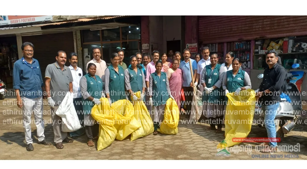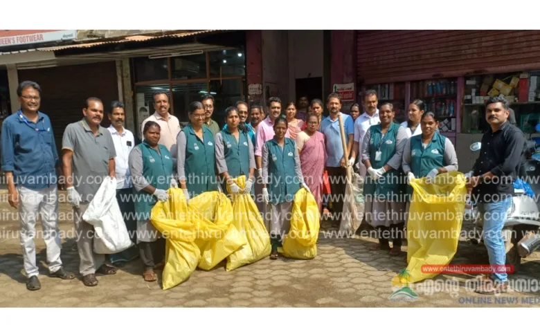 തിരുവമ്പാടി :മാലിന്യമുക്ത നവകേരളം പരിപാടിയുടെ ഭാഗമായി തിരുവമ്പാടി ഗ്രാമപഞ്ചായത്തിനെ സമ്പൂർണ്ണ ശുചിത്വ- വലിച്ചെറിയൽ മുക്ത ഗ്രാമമാക്കുന്നതിനുള്ള ശുചിത്വ ജനവലയം ക്യാമ്പയിന്റെ ഭാഗമായി തിരുവമ്പാടി ഗ്രാമ പഞ്ചായത്തിലെ അങ്ങാടികൾ ശുചീകരിച്ചു. തിരുവമ്പാടി അങ്ങാടിയിൽ നടന്ന ശുചീകരണ പരിപാടി ഗ്രാമപഞ്ചായത്ത് പ്രസിഡണ്ട് മേഴ്സി പുളിക്കാട്ട് ഉദ്ഘാടനം ചെയ്തു.