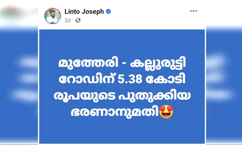 മുക്കം: നഗരസഭയിൽ മരാമത്ത് വകുപ്പിനു കീഴിലെ മുത്തേരി കല്ലുരുട്ടി റോഡിന് 5.38 കോടി രൂപയുടെ പുതുക്കിയ ഭരണാനുമതി ലഭിച്ചു.2021ൽ 5 കോടിയുടെ ഭരണാനുമതി ലഭിച്ചെങ്കിലും ഉപരിതലം പുതുക്കലിന്റെ കാലാവധി തീരാത്തതിനാൽ പ്രവൃത്തിക്ക് സാങ്കേതിക അനുമതി ലഭിച്ചിരുന്നില്ല.കഴിഞ്ഞ ഡിസംബറിൽ ഡിപിഎൽ കാലാവധി തീർന്നപ്പോഴേക്കും റേറ്റ് പരിഷ്കരണവും വന്നു.ഇതോടെയാണ് 3.4 കിലോ മീറ്റർ ദൈർഘ്യമുള്ള റോഡിന് പുതിയ ഭരണാനുമതി വേണ്ടി വന്നതെന്ന് ലിന്റോ ജോസഫ് എം.എൽ.എ പറഞ്ഞു.ബിഎം ആൻഡ് ബിസി നിലവാരത്തിലാണ് റോഡ് പരിഷ്കരണ പ്രവൃത്തി നടത്തുക.സാങ്കേതികാനുമതിയാണ് ഇനി ലഭിക്കേണ്ടത്.