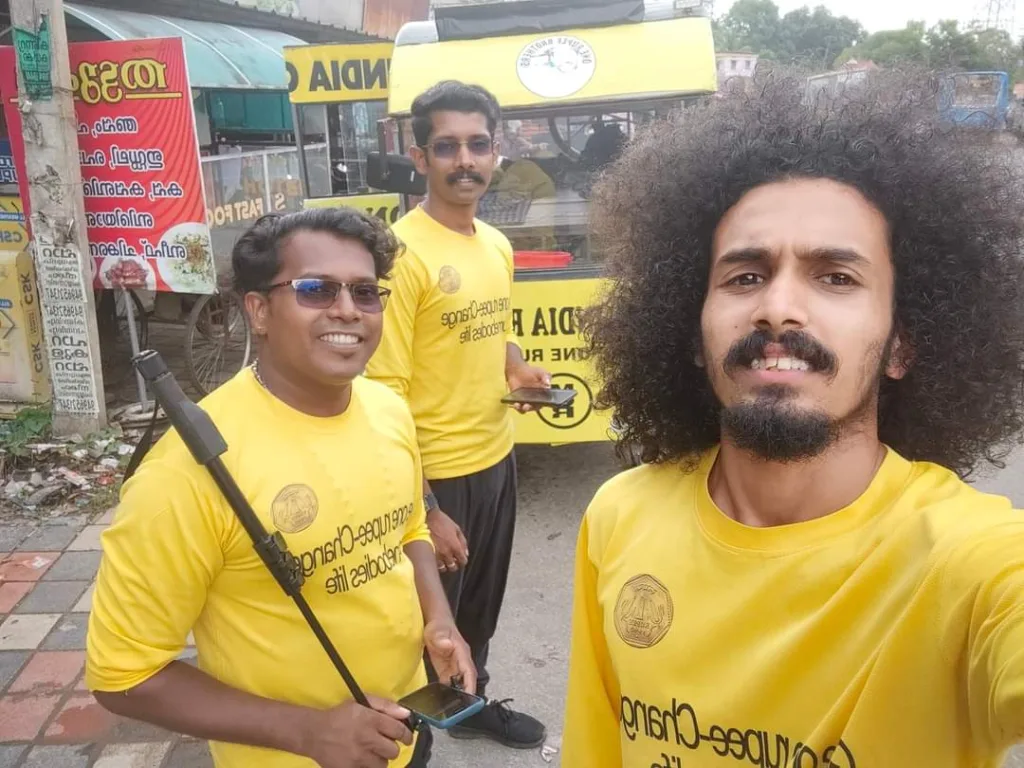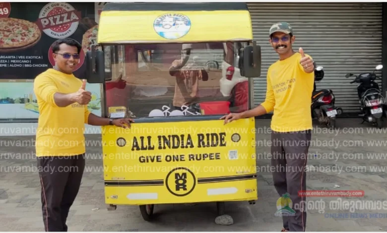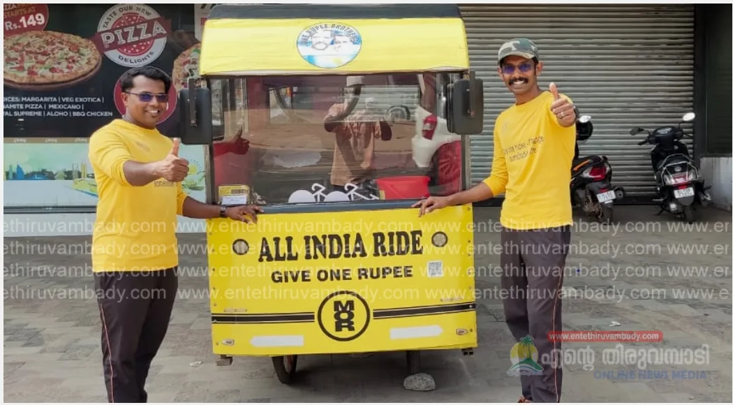 ഒരു രൂപയ്ക്ക് 5 വീടോ? സ്വന്തം ‘കാരവനി’ൽ എഴുതിവച്ചിരിക്കുന്ന ആശ്ചര്യ ചോദ്യത്തിന് ഈ മൂവർസംഘം തന്നെ ഉത്തരം തരുന്നു. നാളെ ആ 5 വീടുകളുടെ തറക്കല്ലിടൽ നടക്കുകയാണ്. രണ്ടു സൈക്കിളുകൾ ചേർത്തുകെട്ടി നിർമിച്ച സൈക്കിൾ കാരവനിൽ കാസർകോട്ടു നിന്നു കശ്മീർ വരെ നീളുന്ന യാത്രയിൽ കിട്ടുന്ന നാണയത്തുട്ടുകളാണ് ഈ കൂടൊരുക്കലിന്റെ മൂലധനം.