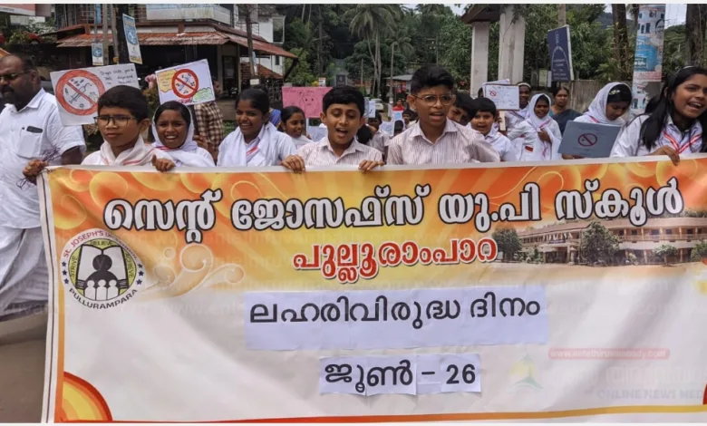പുല്ലൂരാംപാറ സെന്റ് ജോസഫ്സ് യു.പി സ്കൂളിൽ ലഹരി വിരുദ്ധദിനം വിവിധ പരിപാടികളോടെ ആചരിച്ചു. സ്കൂൾ സീനിയർ അസിസ്റ്റന്റ് എൽസമ്മ അഗസ്റ്റിൻ പരിപാടികൾ ഉദ്ഘാടനം ചെയ്തു. സ്കൂൾ അങ്കണത്തിൽ സ്ഥാപിച്ച ഒപ്പുമരത്തിൽ ഒരിക്കലും ലഹരി ഉപയോഗിക്കില്ല എന്ന ദൃഢപ്രതിജ്ഞയോടെ വിദ്യാർത്ഥികൾ തങ്ങളുടെ ഒപ്പുകൾ രേഖപ്പെടുത്തി. ലഹരി വിരുദ്ധ റാലി, പ്രതിജ്ഞ, പോസ്റ്റർ രചനാ മൽസരം . ഫ്ലാഷ് മോബ്, തുടങ്ങിയ പരിപാടികളും നടന്നു. അധ്യാപകരായ ജോസ്ന എൻ ജോയി . ജിസ ജോർജ് . ബിന്ദു കെ.മാത്യു . അബ്ദുൾ റഷീദ് എന്നിവർ പരിപാടികൾക്ക് നേതൃത്വം നൽകി.