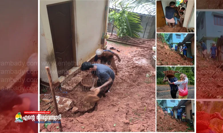 കനത്ത മഴ: വീട്ടിലേക്ക് ഇടിഞ്ഞുവീണ മണ്ണ് ഡിവൈഎഫ്ഐയുടെ നേതൃത്വത്തിൽ നീക്കം ചെയ്തു