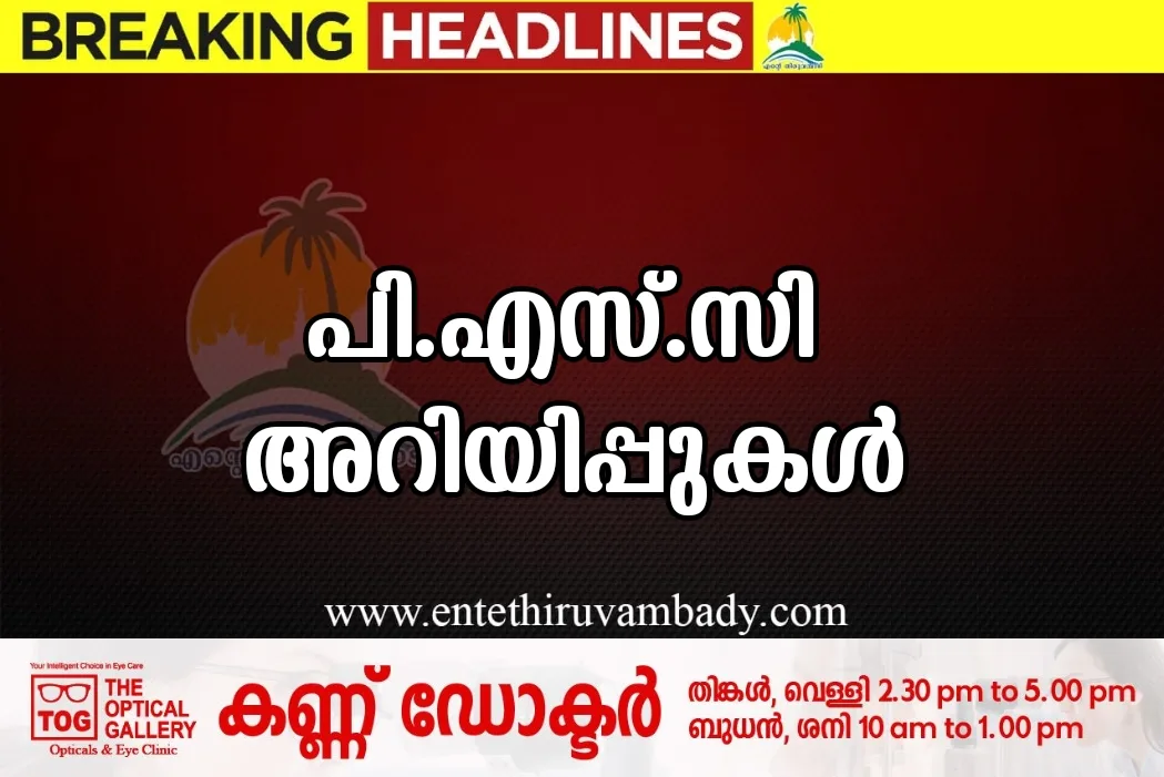 പി എസ് സി അറിയിപ്പ്ജില്ലയിലെ പൊതു വിദ്യാഭ്യാസ വകുപ്പില് ഹൈസ്കൂൾ ടീച്ചര് (ഇംഗ്ലീഷ്) (കാറ്റഗറി നമ്പര്. 254/2021) തസ്തികയ്ക്ക് 28.01.2023ന് പ്രസിദ്ധീകരിച്ച ചുരുക്കപ്പട്ടികയില് ഉള്പ്പെട്ട ഉദ്യോഗാര്ത്ഥികള്ക്കുള്ള അഭിമുഖത്തിന്റെ രണ്ടാം ഘട്ടം ജൂലൈ 14ന് പി എസ് സി കണ്ണൂർ ജില്ലാ ഓഫീസില് നടക്കും. ഉദ്യോഗാര്ത്ഥികൾക്ക് അവരുടെ പ്രൊഫൈലില് അഡ്മിഷന് ടിക്കറ്റ് ലഭ്യമാക്കിയിട്ടുള്ളതിനാല് വൃക്തിഗത ഇന്റർവ്യൂ മെമ്മോ അയയ്കുന്നതല്ല. അഡ്മിഷന് ടിക്കറ്റ് പ്രൊഫൈലില് നിന്നും ഡൗൺലോഡ് ചെയ്തെടുത്തു ആവശ്യമായ രേഖകൾ സഹിതം അഡ്മിഷന് ടിക്കറ്റില് പരാമര്ശിച്ച ഓഫീസിലും തിയ്യതിയിലും അഭിമുഖത്തിന് ഹാജരാകേണ്ടതാണെന്ന് ജില്ലാ പി എസ് സി ഓഫീസർ അറിയിച്ചു. അഡ്മിഷന് ടിക്കറ്റ് പ്രൊഫൈലില് ലഭ്യമായിട്ടില്ലാത്തവര് പി.എസ്.സി. ജില്ലാ ഓഫീസുമായി ബന്ധപ്പെടേണ്ടതാണ്. ഫോൺ: 0495 2371971