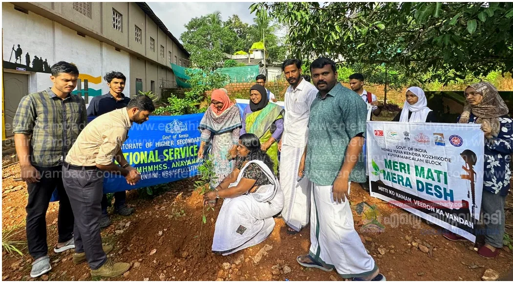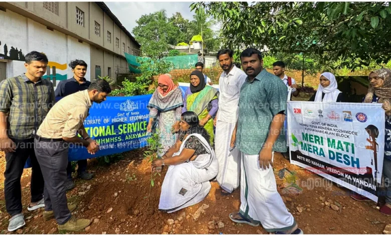 മുക്കം: സ്വാതന്ത്ര്യത്തിന്റെ എഴുപത്തഞ്ചാം വാർഷികത്തോടനുബന്ധിച്ചു നെഹ്റു യുവകേന്ദ്ര കോഴിക്കോട് കുന്ദമംഗലം ബ്ലോക്കിന്റെയും എൻ.എസ്.എസ് യുണിറ്റ് VMHM ഹയർസെക്കണ്ടറി സ്കൂൾ ആനയാൻകുന്നിന്റെയും, ഐഎച്ച്ആർഡി കോളേജ് തിരുമ്പാടിയുടെയും ആഭിമുഖ്യത്തിൽ VMHM ഹയർസെക്കണ്ടറി സ്കൂൾ ആനയാങ്കുന്നിൽ വച്ചു “മേരീ മട്ടി മേരാ ദേശ് “പരിപാടി സംഘടിപ്പിച്ചു. പരിപാടിയുടെ ഭാഗമായി സ്കൂൾ പരിസരത്തു വിവിധ വൃക്ഷതൈകൾ നട്ടുപിടിപ്പിക്കുകയും രാജ്യത്തിന്റെ വീരന്മാർക് അഭിനന്ദനം അർപ്പിക്കുകയും ചെയ്തു. കാരശ്ശേരി പഞ്ചായത്ത് പ്രസിഡന്റ് വി. പി സ്മിത ഉദ്ഘാടനം ചെയ്തു.കുന്ദമംഗലം ബ്ലോക്ക് പഞ്ചായത്ത് മെമ്പർ ആബിത അധ്യക്ഷത വഹിച്ചു. NYK യൂത്ത് വോളണ്ടിയർ ശരത് സ്വാഗതം പറഞ്ഞു. എൻ.എസ്.എസ് സെക്രട്ടറി അശ്വിൻ പഞ്ച്പ്രാൻ പ്രതിജ്ഞ ചൊല്ലികൊടുത്തു. കാരശ്ശേരി പഞ്ചായത്ത് വൈസ് പ്രസിഡന്റ് ജംഷിദ് ഒളകര, വാർഡ് മെമ്പർ കുഞ്ഞാലി, എൻ.എസ്.എസ് പ്രോഗ്രാം ഓഫിസിർമാരായ നസീറ, ജിംഷിദ് എന്നിവർ പ്രസംഗിച്ചു. എൻ.എസ്.എസ് വോളണ്ടിയർ രജനി മോൾ നന്ദി പറഞ്ഞു.