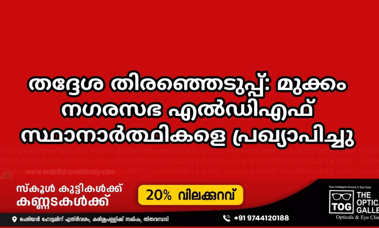 ആകെയുള്ള 34 വാർഡുകളിലെ പ്രഖ്യാപിച്ച 27 എണ്ണം ഒഴികെയുള്ള 8,18,19,20,21,30,31 എന്നീ ഏഴു വാർഡുകളുടെ സ്ഥാനാർത്ഥി പ്രഖ്യാപനം പിന്നീട് നടക്കും