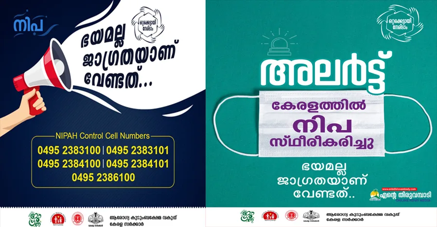 · നിപ ബാധ കണ്ടെത്തുന്ന ഇടങ്ങളില് പനിയുടെ ലക്ഷണങ്ങള് ഉള്ള എല്ലാവരും, പ്രത്യേകിച്ച് പനിയോടൊപ്പം തലവേദന, ജെന്നി, പിച്ചും പേയും പറയുക, ചുമ, ശ്വാസതടസത്തിന്റെയോ ശ്വാസം മുട്ടലിന്റെയോ ലക്ഷണങ്ങള് എന്നിവയില് ഒന്നെങ്കിലും ഉള്ളവരും കുടുംബാംഗങ്ങള് ഉള്പ്പെടെ അവരെ പരിചരിക്കുന്നവരും എന് 95 മാസ്ക് ധരിക്കേണ്ടതാണ്. രോഗിയുടെ വ്യക്തിപരമായ ആവശ്യങ്ങള്ക്കുള്ള സാമഗ്രികള് പ്രത്യേകം സൂക്ഷിക്കുകയും ഉപയോഗിക്കുകയും ചെയ്യുക.