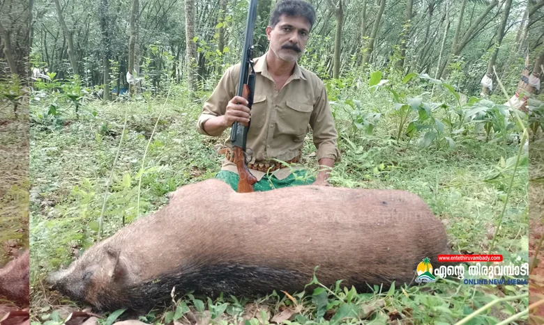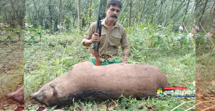 പുല്ലുരാംപാറ : പള്ളിപ്പടി പള്ളിപ്പാലത്തിനു സമീപം മാസങ്ങളായി വൻ കൃഷി നാശം വരുത്തിക്കൊണ്ടിരുന്ന കാട്ടുപന്നിയെ വനം വകുപ്പിലെ എം പാനൽ ഷൂട്ടറായ പുല്ലുരാംപാറ ഇടക്കര വിൽസൺ ഇന്ന് വെടിവെച്ച് വീഴ്ത്തി..