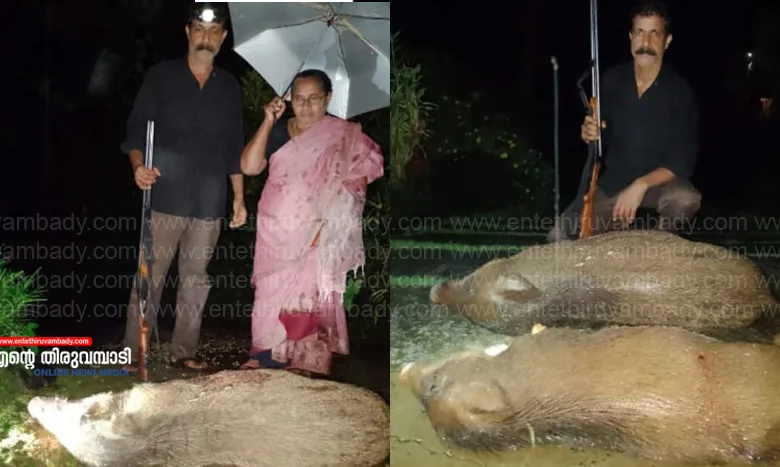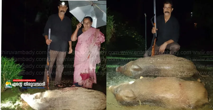 തിരുവമ്പാടി : പുല്ലുരാംപാറ, ജോയ് റോഡ് പന്തലാടിക്കൽ ജോസുകുട്ടിയുടെ പറമ്പിൽ നിന്നും, കോടഞ്ചേരി പഞ്ചായത്ത് പരിധിയിലെ പള്ളിപ്പടി പാലത്തിനു സമീപത്തു നിന്നുമായി മാസങ്ങളായി വൻ കൃഷിനാശം വരുത്തിക്കൊണ്ടിരുന്ന രണ്ട് കാട്ടുപന്നികളെ കൂടി വനം വകുപ്പിലെ എം പാനൽ ഷൂട്ടറായ പുല്ലുരാംപാറ ഇടക്കര വിൽസൺ മണിക്കൂറുകളുടെ വ്യത്യാസത്തിൽ ഇന്ന് പുലർച്ചെ വെടിവെച്ച് കൊന്നു…കഴിഞ്ഞ ഒരാഴ്ച്ചക്കുള്ളിൽ നാല് കാട്ടുപന്നികളെയാണ് ഇദ്ദേഹം വെടിവെച്ചുകൊന്നത്..