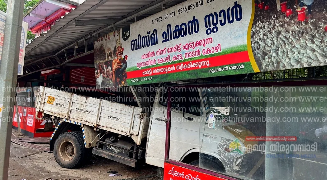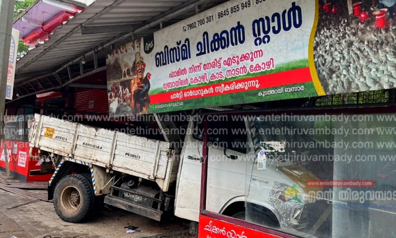 കൂടത്തായി :കൊയിലാണ്ടി – എടവണ്ണ സംസ്ഥാന പാതയിൽ കൂടത്തായിൽ മിനിലോറി കടയിലേക്ക് നിയന്ത്രണം വിട്ടു പാഞ്ഞ് കയറി അങ്ങാടിയിലുളള ബിസ്മി കോഴി കടയിലേക്കാണ് ലോറി ഇടിച്ചു കയറിയത്. എടവണ്ണയിൽ നിന്നും ലോഡ് ഇറക്കി ഇരിട്ടിയിലേക്ക് തിരിച്ച് പോവുകയായിരുന്ന മിനിലോറിയാണ് അപകടത്തിൽ പെട്ടത്. കട പൂർണ്ണമായും തകർന്നു. വാഹനത്തിലുള്ളവർക്ക് പരിക്കില്ലാതെ രക്ഷപ്പെട്ടു. ഇന്ന് പുലർച്ചെ ആയിരുന്നു അപകടം നടന്നത്