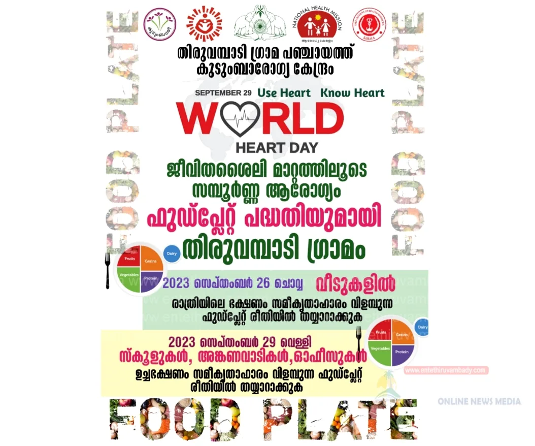 തിരുവമ്പാടി: ജീവിതശൈലി മാറ്റത്തിലൂടെ സമ്പൂർണ്ണ ആരോഗ്യം എന്ന ലക്ഷ്യവുമായി കോഴിക്കോട് ജില്ലയിൽ നടപ്പിലാക്കി വരുന്ന പദ്ധതിയാണ് ജീവതാളം. ശാസ്ത്രീയ രീതിയിലുള്ള ചിട്ടയായ വ്യായാമം, ആരോഗ്യകരമായ ഭക്ഷണരീതി, പ്രാരംഭഘട്ടത്തിൽ തന്നെ ജീവിതശൈലി രോഗങ്ങളെ കണ്ടെത്തുകയും ശരിയായ ചികിത്സ എടുക്കുകയും ചെയ്യുക എന്നതുമാണ് ജീവിതശൈലി രോഗങ്ങൾ ചെറുക്കുന്നതിനുള്ള ഒരേ ഒരു പോംവഴി. ജീവിതശൈലി രോഗങ്ങളുടെ വ്യാപ്തി വർദ്ധിച്ചുകൊണ്ടിരിക്കുകയാണ്, രോഗാവസ്ഥയും മരണങ്ങളും വർദ്ധിച്ചുവരുന്ന ഈ സാഹചര്യത്തിൽ ജീവിതശൈലി രോഗങ്ങളെ തടയാനായി തിരുവമ്പാടി ഗ്രാമപഞ്ചായത്ത് കുടുംബാരോഗ്യ കേന്ദ്രത്തിന്റെ നേതൃത്വത്തിൽ ലോക ഹൃദയദിനത്തിന്റെ ഭാഗമായി സെപ്റ്റംബർ 26ന് തിരുവമ്പാടി ഗ്രാമപഞ്ചായത്തിലെ എല്ലാ വീടുകളിലും സമീകൃതാഹാരം വിളമ്പുന്ന ശാസ്ത്രീയ രീതിയായ ഫുഡ് പ്ലേറ്റ് സംവിധാനത്തിൽ ഭക്ഷണം ഒരുക്കുന്നു. സെപ്റ്റംബർ 29ന് എല്ലാ വിദ്യാലയങ്ങളിലും അംഗനവാടികളിലും ഓഫീസുകളിലും ഫുഡ് പ്ലേറ്റ് രീതിയിലാണ് ഭക്ഷണം കഴിക്കുന്നത്. കുടുംബശ്രീ, വിദ്യാഭ്യാസ വകുപ്പ്, വിവിധ ഡിപ്പാർട്ട്മെന്റുകൾ എന്നിവരുടെ സഹകരണത്തോടെയാണ് പദ്ധതിക്ക് തുടക്കം കുറിക്കുന്നത്. ഫുഡ് പ്ലേറ്റ് എന്നാൽ നാം കഴിക്കുന്ന ഭക്ഷണ പ്ലേറ്റിന്റെ പകുതിഭാഗം പച്ചക്കറികളും പഴവർഗ്ഗങ്ങളും ബാക്കി പകുതിയിൽ 30% ധാന്യം ( അരി, ഗോതമ്പ് മുതലായവ ) 20% മാംസ്യം, ( പയർ വർഗ്ഗങ്ങൾ, മീൻ, മുട്ട, ഇറച്ചി, പാൽ ) എന്നിവ ചേർന്ന സമീ കൃതാഹാരം വിളമ്പുന്ന ശാസ്ത്രീയ രീതിയാണിത്. ശരീരത്തിന് ആവശ്യമായ എല്ലാ പോഷക ഘടകങ്ങളും ജലവും കൃത്യമായ അളവിൽ സംയോജിപ്പിച്ചുകൊണ്ടുള്ള ഭക്ഷണ രീതിയാണ് ഫുഡ് പ്ലേറ്റ്.*സപ്തംബർ 26 ന് വീട്ടുകാർ ചെയ്യേണ്ടത്* രാത്രിയിലെ ഭക്ഷണം ഫുഡ് പ്ലേറ്റ് രീതിയിൽ തയ്യാറാക്കി (നാട്ടിൽ നിന്ന് കിട്ടുന്ന ഇലക്കറികളും പച്ചക്കറികളും ഉൾപ്പെടെ) തീൻമേശയിൽ എത്തിച്ച് കുടുംബത്തോടൊപ്പം ഒന്നിച്ചു ഭക്ഷണം കഴിക്കുകയും, ഫുഡ് പ്ലേറ്റിന്റെ ഫോട്ടോ എടുക്കുകയും കുടുംബശ്രീ ഭാരവാഹികൾക്ക് അയച്ചുകൊടുക്കുകയും വേണം. ഏറ്റവും നല്ല ഫുഡ് പ്ലേറ്റ് തയ്യാറാക്കിയ കുടുംബത്തിന് വാർഡ് തലത്തിലും പഞ്ചായത്ത് തലത്തിലും സമ്മാനങ്ങൾ നൽകുന്നതാണ്. ജീവിതശൈലി രോഗങ്ങളെ നേരത്തെ കണ്ടെത്തുന്നതിനുള്ള സ്ക്രീനിങ്,ചികിത്സ, ക്യാൻസർ സ്ക്രീനിംഗ്, യോഗ പരിശീലനം വിവിധ ബോധവൽക്കരണ പരിപാടികൾ തുടങ്ങിയവ ജീവതാളം പദ്ധതിയുടെ ഭാഗമായി തിരുവമ്പാടി ഗ്രാമപഞ്ചായത്തിൽ നടന്നുവരുന്നു.