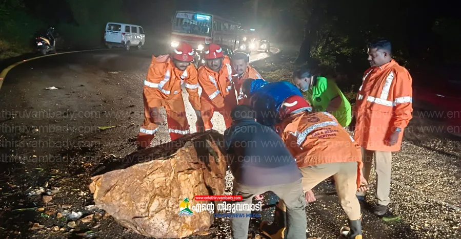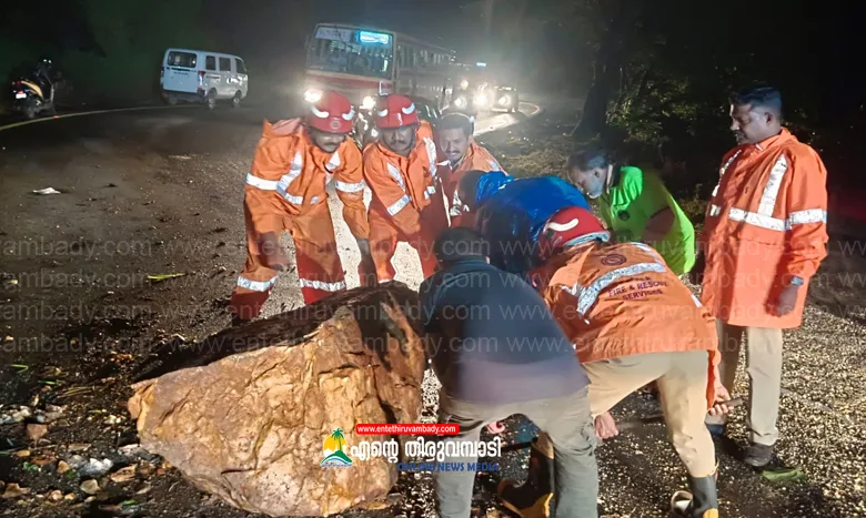 ചുരത്തിലെ ഒമ്പതാം വളവിൽ റോഡിലേക്ക് വമ്പൻ പാറക്കല്ല് അടർന്നുവീണു, വാഹനങ്ങൾ ഇല്ലാത്തത് അപകടം ഒഴിവായി
