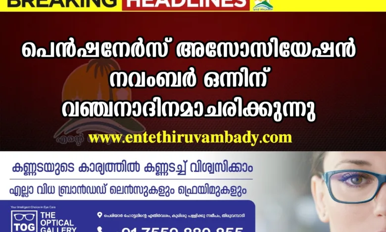 തിരുവമ്പാടി:കേരള സംസ്ഥാന സർവീസ് പെൻഷനേർസ് അസോസിയേഷന്റെ നേതൃത്വത്തിൽ കേരളപ്പിറവി ദിനത്തിൽ നവംബർ ഒന്നാം തീയ്യതി രാവിലെ 10.30 ന് തിരുവമ്പാടി സബ് ട്രഷറിക്ക് മുന്നിൽ വഞ്ചനാദിനത്തിന്റെ ഭാഗമായി പ്രകടനവും വിശദീകരണയോഗവും നടത്തി ശക്തമായി പ്രതിഷേധിക്കുമെന്ന് കെ.എസ്.എസ്.പി.എ തിരുവമ്പാടി മണ്ഡലം കമ്മറ്റിയോഗം തീരുമാനിച്ചു. വിരമിച്ച പെൻഷൻകാരുടെ ക്ഷാമാശ്വാസം ആറ് ഗഡു (18%) ഉടൻ അനുവദിക്കണമെന്നും, പെൻഷൻ പരിഷ്കരണ കുടിശ്ശിക ഉടൻ വിതരണം ചെയ്യണമെന്നും, മെഡി സെപ്പ് ന്യൂനതകൾ ഉടൻ പരിഹരിച്ച് പെൻഷൻകാർക്ക് ഗുണകരമാകുന്ന രീതിയിൽ മെഡിസെപ്പ് നടപ്പിലാക്കുക, ശബള പരിഷ്കരണ കമ്മീഷനെ നിയമിക്കണമെന്നുമുള്ള ആവശ്യമുന്നയിച്ച് കൊണ്ടാണ് വഞ്ചനാദിനമാചരിക്കുന്നത്. യോഗം പ്രസിഡണ്ട് ജോൺസൺ ജോർജ് ഉൽഘാടനം ചെയ്തു. കെ.ജെ. സെലിമോൻ അധ്യക്ഷനായിരുന്ന യോഗത്തിൽ നിയോജകമണ്ഡലം പ്രതിനിധി അനിൽകുമാർ പൈക്കാട്ടിൽ, സുന്ദരൻ എ പ്രണവം, പി.വി. ജോസഫ്, വി.എം.ഗംഗാദേവി, ഷാലി എ. ജെയിംസ്, ഗീത മനക്കൽ, ചാർലി തോമസ് എന്നിവർ ആശംസ പ്രസംഗം നടത്തി