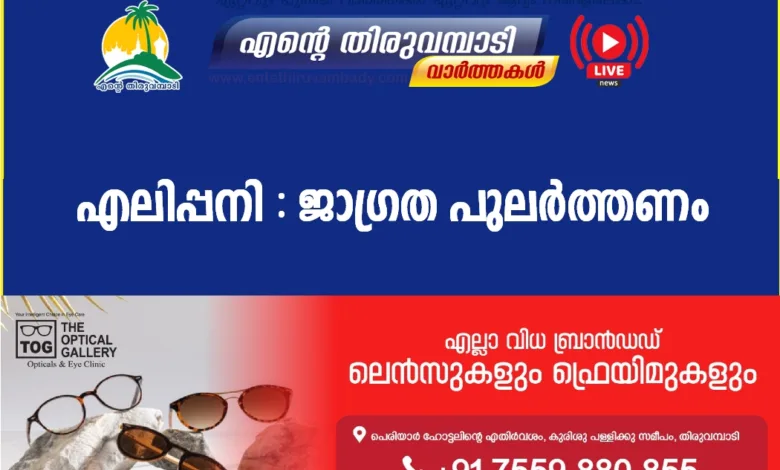 കോഴിക്കോട്:ജില്ലയിൽ എലിപ്പനി രോഗികളും മരണവും കൂടുന്ന സാഹചര്യത്തിൽ എലിപ്പനിക്കെതിരെ ജാഗ്രത പുലർത്തണമെന്ന് ആരോഗ്യ വകുപ്പ്. മലിനജലവുമായി ഇടപഴകുന്നവരിൽ എലിപ്പനി സാധ്യത കൂടുതൽ കാണപ്പെടുന്നതിനാൽ പ്രതിരോധ ഗുളികൾ ഉൾപ്പടെ കഴിക്കണം.കടുത്ത പനി, തലവേദന, ശക്തമായ ശരീരവേദന, പേശീവേദന, കണ്ണിന് ചുവപ്പ് മഞ്ഞനിറം, വെളിച്ചത്തിൽ നോക്കാൻ പ്രയാസം എന്നിവയാണ് എലിപ്പനിയുടെ പ്രധാന ലക്ഷണങ്ങൾ. എലിപ്പനിക്ക് ഫലപ്രദമായ ചികിൽസ ലഭ്യമാണ്. എന്നാൽ സ്വയം ചികിൽസയ്ക്കു മുതിരുന്നതാണ് എലിപ്പനിരോഗം ഗുരുതരമാക്കുന്നത്.എലിപ്പനി ലക്ഷണങ്ങൾ കണ്ടാൽ ഡോക്ടറുടെ സേവനം തേടേണ്ടതാണ്. മലിനജലത്തിൽ ജോലി ചെയ്യേണ്ട സാഹചര്യം വരികയാണെങ്കിൽ മുൻകൂട്ടി പ്രതിരോധ ഗുളിക കഴിക്കാവുന്നതാണ്. പ്രതിരോധ ഗുളിക എല്ലാ സർക്കാർ ആശുപത്രികളിലും സൗജന്യമായി ലഭിക്കുമെന്ന് ജില്ലാ മെഡിക്കൽ ഓഫീസർ അറിയിച്ചു