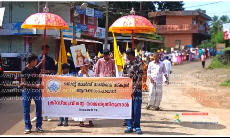 ആനക്കാംപൊയിൽ:ക്രിസ്തുവിന്റെ രാജ്യത്വ തിരുന്നാളിന്റെ ഭാഗമായി ആനക്കാംപൊയിൽ ഇടവകയിലെ സൺഡേ സ്കൂളിലെ വിദ്യാർത്ഥികളുടെ ആഭിമുഖ്യത്തിൽ ബാൻഡ് മേളങ്ങളുടെ അകമ്പടിയോടെ പ്രൗഢ ഗംഭീരമായ ഒരു വിശ്വാസ പ്രഘോഷണ റാലി നടത്തി. ജയ്, ജയ് ക്രിസ്തു രാജൻ എന്ന മുദ്രാവാക്യം വിദ്യാർത്ഥികൾ ഏറ്റുചൊല്ലി. ഇടവക വികാരി അഗസ്റ്റിൻ പട്ടാനിയിൽ, സൺഡേ സ്കൂൾ ഹെഡ്മാസ്റ്റർ ബെന്നി മനത്താനം, ബ്രദർ അഗസ്റ്റിൻ കാരക്കാട്ട്,സജി വയലാ മണ്ണിൽ, അധ്യാപകർ,PTA ഭാരവാഹികൾ തുടങ്ങിയവർ പരിപാടികൾക്ക് നേതൃത്വം നല്കി. പരിപാടികളുടെ ഭാഗമായി വിദ്യാർത്ഥികൾക്കായി വിവിധ മത്സരങ്ങളും സംഘടിപ്പിച്ചു.