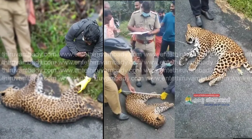 തിരുവമ്പാടി:തിരുവമ്പാടി പഞ്ചായത്തിലെ മുത്തപ്പൻപുഴയിൽ പുള്ളിപ്പുലിയെ ചത്ത നിലയിൽ കണ്ടെത്തി.ഇന്ന് രാവിലെയാണ് സമീപവാസികൾ മുത്തപ്പൻപുഴ-മറിപ്പുഴ റോഡിൽ മൈനാം വളവ് റോഡിൽ ഏകദേശം രണ്ടര വയസ്സുള്ള പുള്ളിപ്പുലിയെ ചത്ത നിലയിൽ കണ്ടെത്തിയത്. ശരീരത്തിൽ മുള്ളൻ പന്നിയുടെ മുള്ള് തറച്ച നിലയിലാണ് കണ്ടെത്തിയത്.ഫോറസ്റ്റ് ടീമംഗങ്ങൾ സ്ഥലത്തെത്തി ജഡം താമരശ്ശേരി ഫോറസ്റ്റ് ഓഫീസിലേക്ക് മാറ്റി.