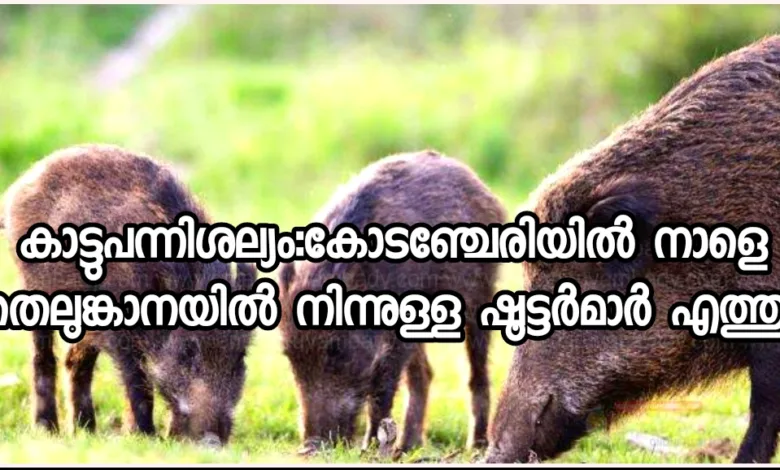 കോടഞ്ചേരി ഗ്രാമപഞ്ചായത്തിലെ കൃഷിയിടങ്ങളിൽ ഇറങ്ങി കൃഷി നശിപ്പിക്കുന്ന കാട്ടുപന്നികളെ ഉന്മൂലനം ചെയ്യുന്നതിനായി തെലുങ്കാനയിൽ നിന്നുള്ള ഷൂട്ടർമാരുടെ സംഘം നാളെ കോടഞ്ചേരിയിൽ എത്തിച്ചേരുന്നുകാട്ടുപന്നി ശല്യം രൂക്ഷമായ പ്രദേശങ്ങളിലെ നിവാസികൾ അതാതു വാർഡ് മെമ്പർമാരുമായോ ഗ്രാമപഞ്ചായത്ത് പ്രസിഡണ്ടുമായോ ബന്ധപ്പെടുവാൻ താല്പര്യപ്പെടുന്നു2,3,4 തീയതികളിലായി കോടഞ്ചേരി ഗ്രാമപഞ്ചായത്തിന്റെ വിവിധ പ്രദേശങ്ങളിൽ കാട്ടുപന്നികൾക്കായുള്ള തിരച്ചിൽ ജനകീയ പിന്തുണയുടെ നടത്തപ്പെടുന്നതാണ് എന്ന് ഗ്രാമപഞ്ചായത്ത് പ്രസിഡൻറ് അലക്സ് തോമസ് ചെമ്പകശ്ശേരി അറിയിച്ചു