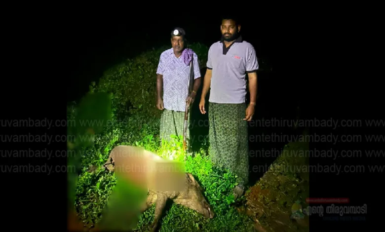 കൂടരഞ്ഞി ഗ്രാമ പഞ്ചായത്തിലെ പനകച്ചാലിൽ കൃഷിനാശം വരുത്തിയ കാട്ടുപന്നിയെ കർഷകരുടെ താൽപ്പര്യം മുൻ നിർത്തി വെടിവെച്ച് കൊന്നു ദിവസങ്ങളോളമായി പ്രദേശത്ത് വന്യമൃഗ ശല്യം മൂലമുള്ള വിളനാശം ശമിപ്പിക്കുന്നതിന് സർക്കാറിന്റെ പുതിയ ഉത്തരവുകൾ പ്രകാരം ഗ്രാമപഞ്ചായത്തുകൾക്ക് സിദ്ധിച്ച പ്രത്യേക അധികാരം വിനിയോഗിച്ചു കൊണ്ട് ഗ്രാമ പഞ്ചായത്ത് പ്രസിഡണ്ടന്റ് ആദർശ് ജോസഫിന്റെ നിർദ്ദേശപ്രകാരം കൃഷിയിടത്തിൽ ഇറങ്ങിയ കാട്ടുപന്നിയെ സെബാസ്റ്റ്യൻ പുതുവേലിൽ എന്നഷൂട്ടർ വെടിവെച്ച് ശാസ്ത്രീയമായി സംസകരിച്ചത്. മുമ്പ് കാട്ടുപന്നികളെ വെടിവെച്ച് കൊന്നാൽ ഫോറസ്റ്റർ റാങ്കിൽ കുറയാത്ത ഒരു ഉദ്യോഗസ്ഥൻ 2 പൊതുജനങ്ങളുടെ സാന്നിദ്ധ്യത്തിൽ മഹസ്സർ തയ്യാറാക്കേണ്ടിയിരുന്നു. എന്നാൽ പുതുക്കിയ നിലവിലുള്ള ഉത്തരവുകൾ കർഷകരുടെ ദുരിതങ്ങൾക്ക് ദ്രുതഗതിയിൽ പരിഹാരം കണ്ടെത്തുന്നതിന് സഹായകമായെന്ന് കൂടരഞ്ഞി ഗ്രാമ പഞ്ചായത്ത് പ്രസിഡൻറ് പറഞ്ഞു.തുടർ ദിവസങ്ങളിലും തിരച്ചിൽ നടത്തും.