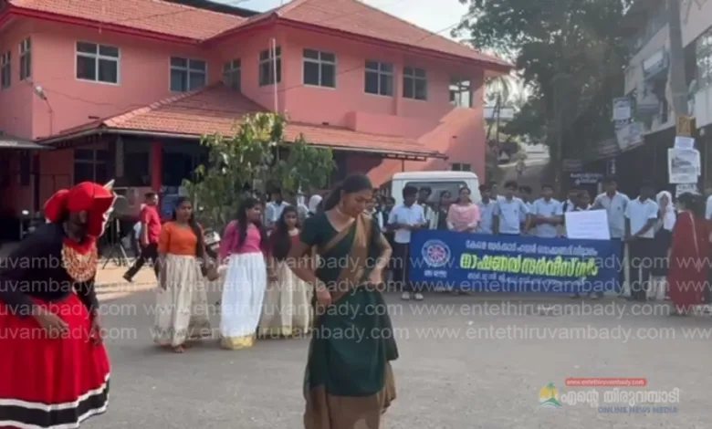ചാത്തമംഗലം: ചാത്തമംഗലം ആർഇസി ഗവൺമെന്റ് ഹയർ സെക്കൻഡറി സ്കൂളിലെ എൻഎസ്എസ് വളണ്ടിയർമാരാണ് ലഹരിക്കെതിരെ പൂതപ്പാട്ടിന്റെ ദൃശ്യാവിഷ്കാരം ഒരുക്കിയത്. വളണ്ടിയർമാരുടെ കലാപരമായ കഴിവുകൾ സമൂഹ നന്മയ്ക്കുതകുന്ന രീതിയിൽ അവതരിപ്പിക്കാനുള്ള ഹയർസെക്കൻഡറി നാഷണൽ സർവീസ് സ്കീമിന്റെ നാടറിയാം എന്ന പരിപാടിയുടെ ഭാഗമായി കട്ടാങ്ങൾ ബസ്റ്റാൻഡിലാണ് പരിപാടി അരങ്ങേറിയത്.