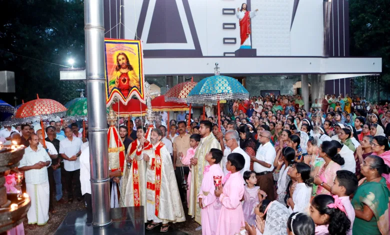 തിരുവമ്പാടി: തിരുഹൃദയ ഫൊറോന പള്ളിയിൽ ഈശോയുടെ തിരുഹൃദയത്തിന്റെയും പരിശുദ്ധ കന്യകാമറിയത്തിന്റെയും വിശുദ്ധ സെബസ്ത്യാനോസിന്റെയും തിരുനാളിന് തുടക്കമായി.വികാരി ഫാ. തോമസ് നാഗ പറമ്പിൽ തിരുനാളിന് കൊടിയേറ്റ് കർമം നടത്തി. അസി.വികാരിമാരായ ഫാ. ജോസഫ് വിലങ്ങു പാറ, ഫാ ജോസഫ് പൊടിമറ്റത്തിൽ എന്നിവർ സഹകാർമ്മികരായിരുന്നു. തുടർന്ന് വി.കുർബ്ബാന, മരിച്ചവരുടെ ഓർമ്മദിനാചരണം, സെമിത്തേരി സന്ദർശനം , എന്നിവയും നടത്തി.