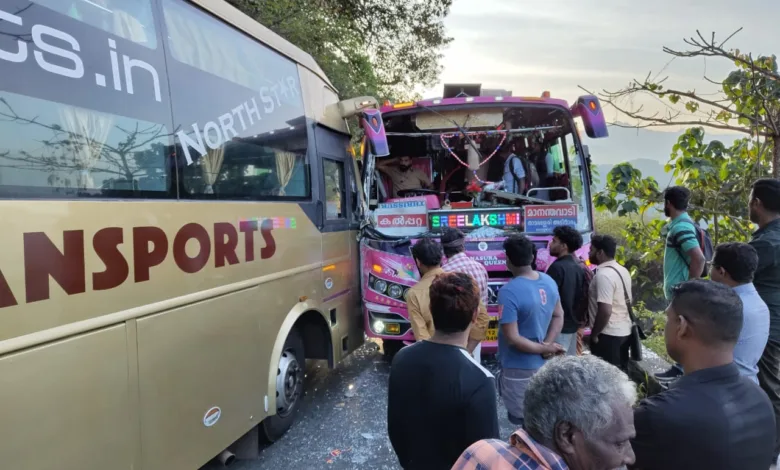 താമരശ്ശേരി: താമരശ്ശേരി ചുരത്തിൽ എട്ട്- ഒമ്പത് വളവുകൾക്കിടയിൽ വാഹനാപകടം. മാനന്തവാടിയിലേക്ക് വരുന്ന സ്വകാര്യ ബസും കോഴിക്കോടേക്ക് പോകുന്ന ടൂറിസ്റ്റ് ബസും തമ്മിൽ ആണ് കൂട്ടിയിടിച്ചത്.