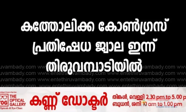 തിരുവമ്പാടി : വന്യമൃഗ ശല്യത്തിൽ കർഷകരെ കുരുതി കൊടുക്കുന്ന നയത്തിനെതിരെ പ്രതിഷേധ ജ്വാല ഇന്ന് ( 13-2-24 ചൊവ്വ) വൈകുന്നേരം 6.30ന്. കത്തോലിക്ക കോൺഗ്രസിന്റെ നേതൃത്വത്തിൽ എല്ലാ സംഘടനകളുടെയും സഹകരണത്തോടെ നടത്തുന്ന പ്രതിഷേധ പരിപാടി വികാരിയച്ചൻ ഫാ. തോമസ് നാഗപറമ്പിൽ ഉദ്ഘാടനം ചെയ്യും.
