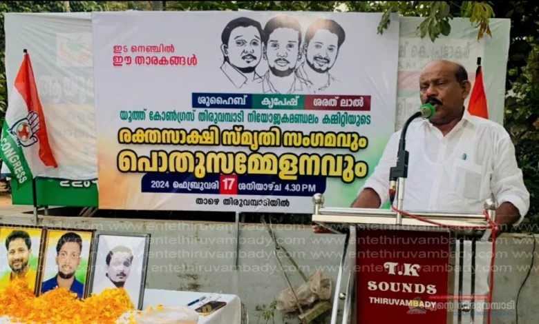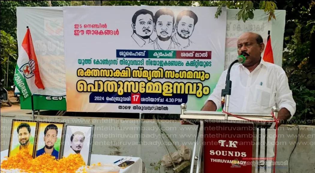 തിരുവമ്പാടി :യൂത്ത് കോൺഗ്രസ് തിരുവമ്പാടി നിയോജക മണ്ഡലം കമ്മിറ്റിയുടെ നേതൃത്വത്തിൽ തിരുവമ്പാടിയിൽ ശുഹൈബ്, കൃപേഷ്, ശരത് ലാൽ രക്തസാക്ഷി സ്മൃതി സംഗമവും പൊതുസമ്മേളനവും നടത്തി. ഡി. സി. സി ജനറൽ സെക്രട്ടറി ബാബു പൈക്കാട്ടിൽ പരിപാടി ഉദ്ഘാടനം ചെയ്തു. നിയോജക മണ്ഡലം യൂത്ത് കോൺഗ്രസ് പ്രസിഡന്റ് അഡ്വ മുഹമ്മദ് ദിഷാൽ അധ്യക്ഷനായിരുന്നു.