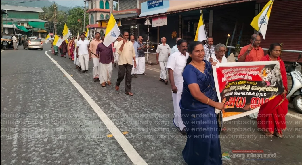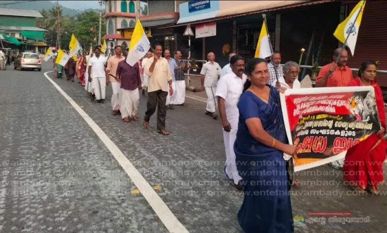 വന്യജീവി ആക്രമണങ്ങൾ ക്കെതിരെ കത്തോലിക്ക കോൺഗ്രസിന്റെ നേതൃത്വത്തിൽ നെല്ലിപ്പൊയിലിൽ പന്തംകൊളുത്തി പ്രതിഷേധ റാലി സംഘടിപ്പിച്ചു
