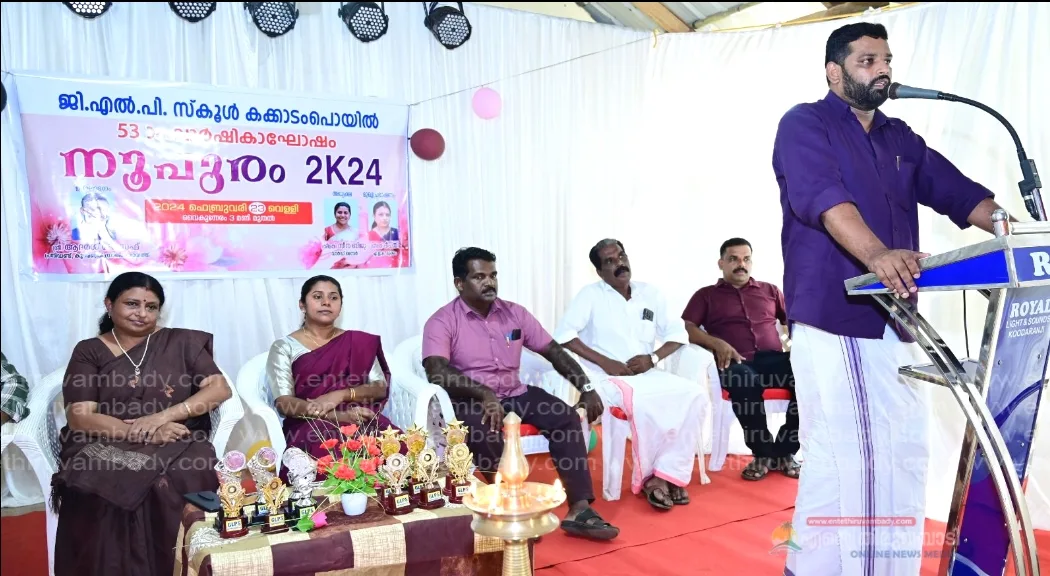 കക്കാടംപൊയിൽ: വിദ്യാദാനത്തിന്റെ 53 വർഷങ്ങൾ പിന്നിട്ടുകൊണ്ട് ജി എൽ പി സ്കൂൾ കക്കാടംപൊയിൽ വാർഷികം ആഘോഷിച്ചു. ഹെഡ്മാസ്റ്റർ ജയരാജൻ വി കെ സ്വാഗതം ആശംസിച്ച ചടങ്ങിൽ വാർഡ് മെമ്പർ സീന ബിജു അധ്യക്ഷത വഹിച്ചു. കൂടരഞ്ഞി ഗ്രാമപഞ്ചായത്ത് പ്രസിഡണ്ട് ആദർശ് ജോസഫ് ഉദ്ഘാടന കർമ്മം നിർവഹിക്കുകയും മുക്കം ഉപജില്ല വിദ്യാഭ്യാസ ഓഫീസർ ദീപ്തി ടി. മുഖ്യപ്രഭാഷണം നടത്തുകയും ചെയ്തു.