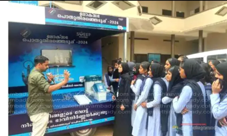 മുക്കം: ലോക്സഭാ തിരഞ്ഞെടുപ്പ് ആസന്നമായ സാഹചര്യത്തില് വിദ്യാർത്ഥികളെ വോട്ടിംഗ് മെഷീൻ പരിചയപ്പെടുത്താനും വോട്ടിന്റെ ആവശ്യകത ബോദ്ധ്യപ്പെടുത്താനും പര്യടനം നടത്തുന്ന വോട്ടുവണ്ടി തെച്യാട് അല് ഇർഷാദ് ആർട്സ് ആൻഡ് സയൻസ് വിമൻസ് കോളേജില് പ്രചാരണം നടത്തി.