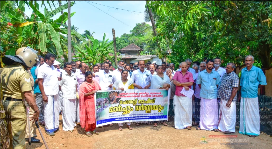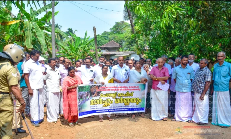ക്ഷീരകർഷകർക്കും റബർ കർഷകർക്കും പുലിക്കൂട്ടത്തിന്റെ സാന്നിധ്യം മൂലം ജോലി ചെയ്യാൻ പറ്റാത്ത സാഹചര്യമാണെന്നും വനംമന്ത്രി ഉറക്കം വെടിഞ്ഞ് കർഷകർക്ക് സുരക്ഷ ഒരുക്കണമെന്നും വനം വകുപ്പിന്റെ കിരാത നടപടി അവസാനിപ്പിച്ചില്ലെങ്കിൽ നിയമലംഘന സമരം നടത്താൻ കർഷകരെ തള്ളി വിടരുതെന്നും ജില്ലാ പഞ്ചായത്ത് മെമ്പർ ബോസ് ജേക്കബ് മാർച്ചും ധർണ്ണയും ഉദ്ഘാടനം ചെയ്തു കൊണ്ടു പറഞ്ഞു.